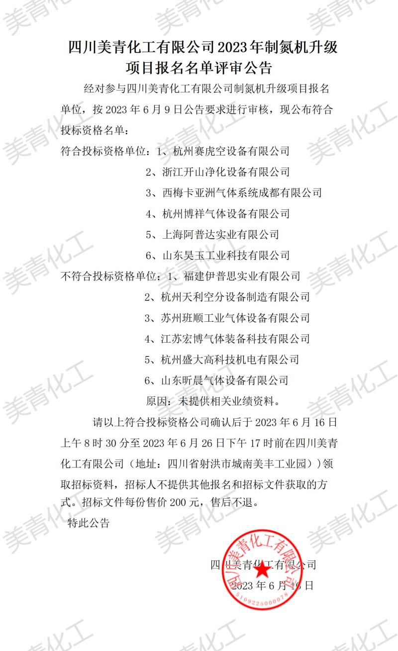 制氮機升級項目報名名單評審公告